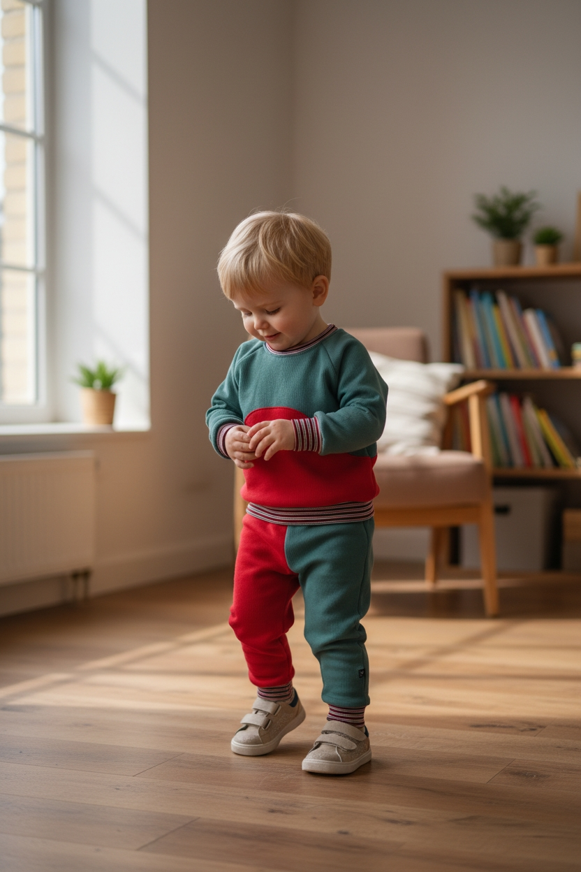 De zachte tailleboord van boordstof (zonder elastiek) sluit prettig aan zonder druk op het buikje. Dankzij de comfortabele fit kan je kindje vrij bewegen tijdens kruipen, spelen en ontdekken.