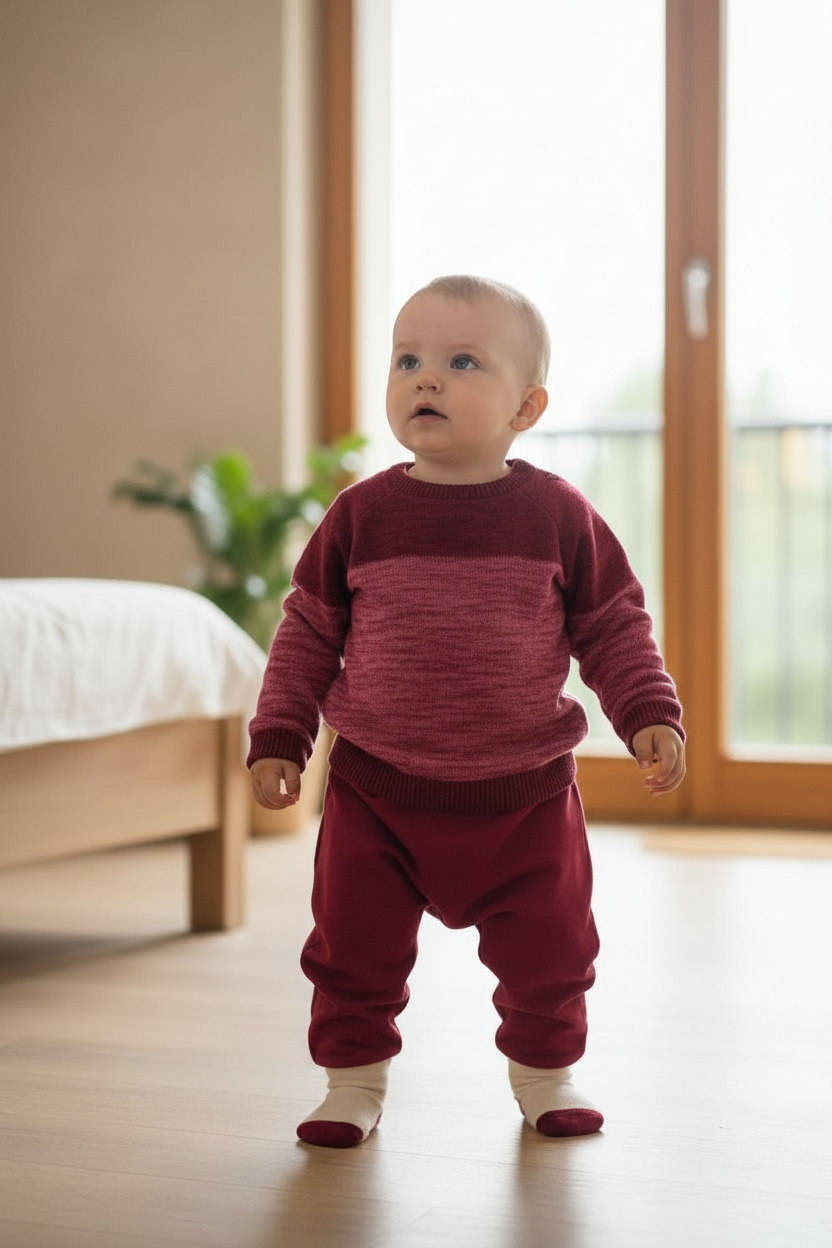 Polykatoen is vormvast, sterk en prettig om te dragen — ideaal voor actieve baby’s en peuters die veel bewegen.