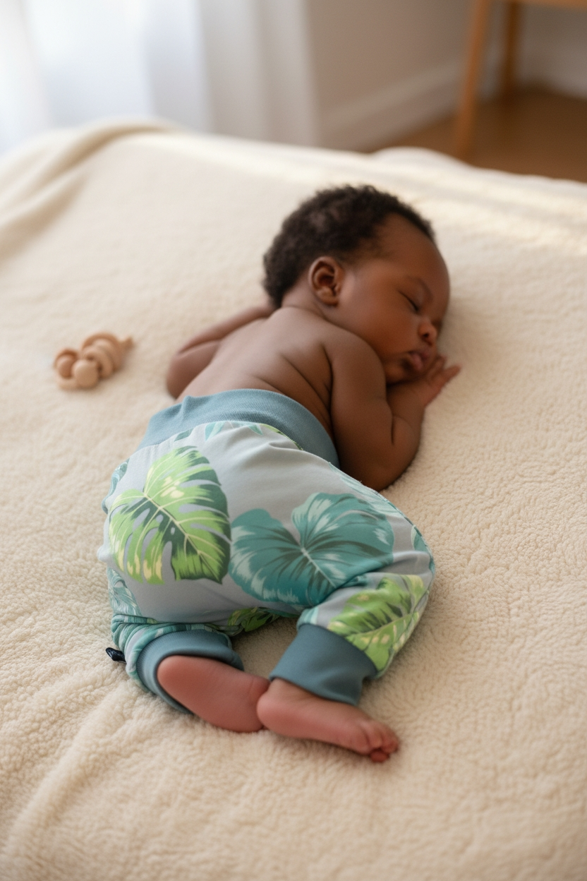 Dit harembroekje is gemaakt van zachte Oeko-Tex gecertificeerde tricot en ontworpen voor een comfortabele pasvorm, ook over wasbare luiers. De extra ruimte bij de billen voorkomt trekken of knellen, iets wat bij gewone broekjes vaak wél gebeurt.